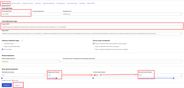 - Раздел КМСЗ (код меры должен быть 030702);